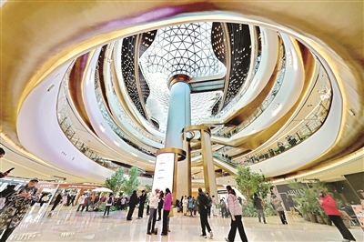 市民们来到湾里·王府井WellTown水幕中庭。 ■记者 周宇杰/摄