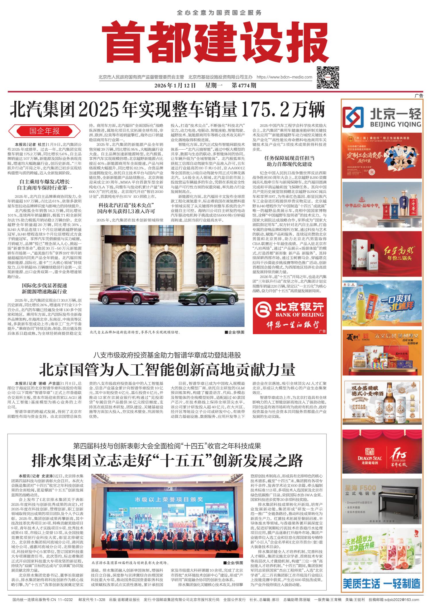 北汽集团2025年实现整车销量175.2万辆