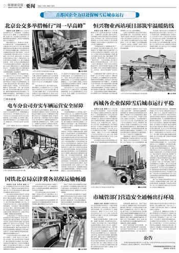 西城各企业保障雪后城市运行平稳