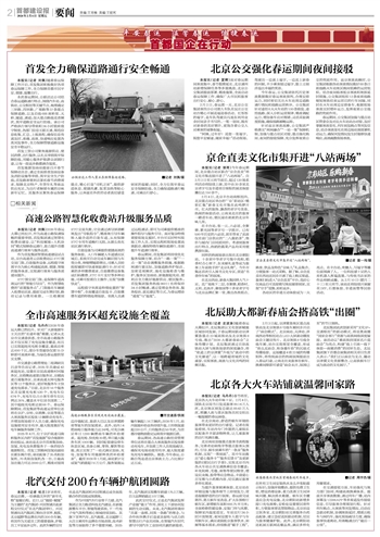 北京南站加强重点旅客全流程服务,完善老幼病残孕等重点旅客从预约、引导、候车到乘车的“一条龙”服务机制,实现“一帮到底”。其中车站推出“爱心服务卡”“服务反馈卡”及更新版的《便民出行手册》,实现北京市内各火车站公共交通换乘信息全覆盖;补充轮椅、毛毯、座垫等便民物资,增设尼龙绳、胶带等应急物品,丰富爱心百宝箱与小药箱内容,切实满足旅客多样化需求。