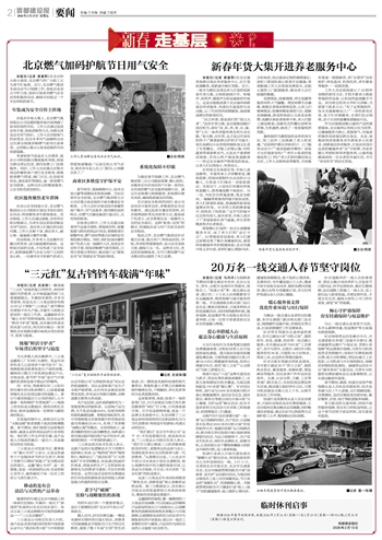 本报讯(记者 马丹丹)为保障春节期间首都交通安全有序,北京公交车、货车、出租车及网约车驾驶员,地铁员工、“快递小哥”等一线交通从业者,预计约二十万名人员将默默坚守在运输服务、物资保障与城市服务的第一线。市交通委联合相关部门及行业企业,精准对接需求,开展多种形式的送温暖活动,同时围绕薪酬补贴、服务保障、权益维护等方面推出系列关爱举措,让每一位坚守者感受到实实在在的温暖与尊重。