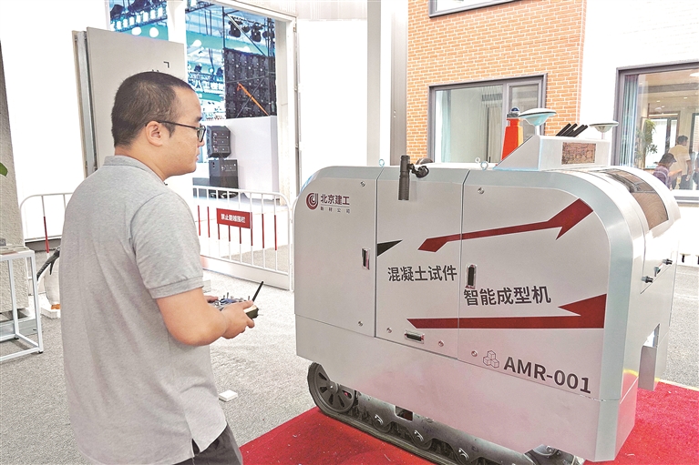 本报讯(记者 谢峰)在2025年服贸会期间,一台敦实可爱的机器人吸引了诸多参观者的目光。这个有些“肉墩墩”的机器人便是北京建工新型建材有限责任公司(以下简称“建工新材”)研发的国内首个混凝土试块智能成型机器人——AMR001。