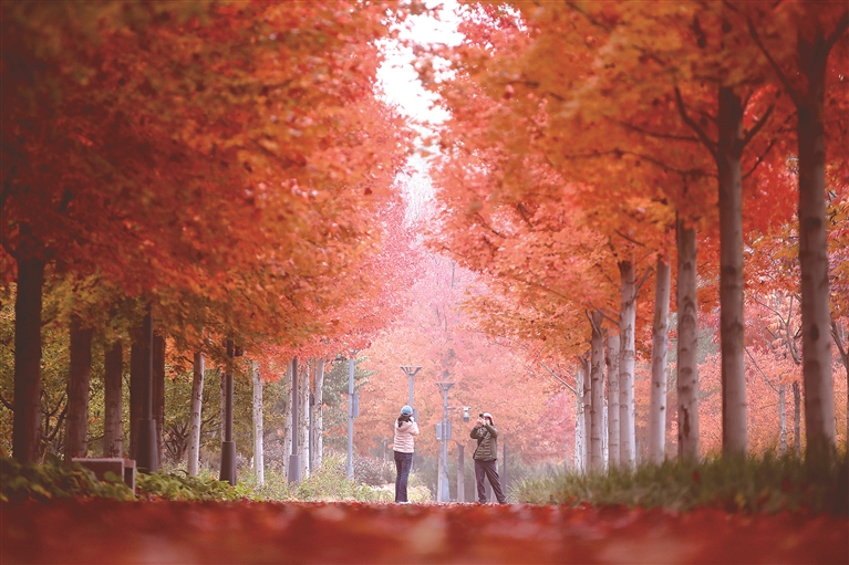 本报讯(记者 崔紫阳)从10月底开始,位于城市副中心的城市绿心森林公园红叶大道进入最佳观赏期。这条历经五年精心培育的景观道,凭借绚烂的秋日景致成为市民游客追捧的“网红打卡地”。