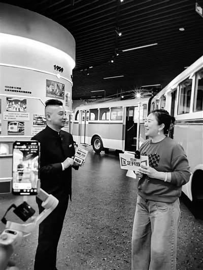 “大家现在看到的,就是咱们北京第一代有轨电车‘铛铛车’的复原模型……”直播镜头前,专业讲解员以亲切朴实的语言,将馆内珍藏的厚重历史娓娓道来。从早期的老车票、旧站牌,到不同年代的16款主力公交车型仿制品,再到运用现代技术呈现的发展脉络,屏幕前的观众跟随镜头与讲解,完成了一次跨越百年的城市交通穿越之旅。尤其当画面聚焦于体现现代“一级踏步”人性化设计的西郊线有轨电车模型时,弹幕中不断涌现“时代在进步”“设计真贴心”的感叹,历史与当下的对话在云端实时展开。