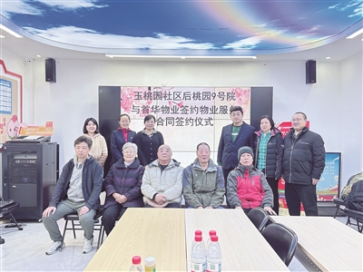 本报讯(记者 郭雨)近日,西城区玉桃园社区会议室里暖意融融。在社区工作者、业主代表期待的目光中,首开集团首华物业公司与后桃园胡同9号院物业管理委员会的代表,分别在物业服务合同上郑重签字、盖章。掌声随即响起,标志着该小区物业管理正式迈入规范化、市场化新阶段,也为首华物业公司新一年非经营性资产市场化拓展迎来“开门红”。