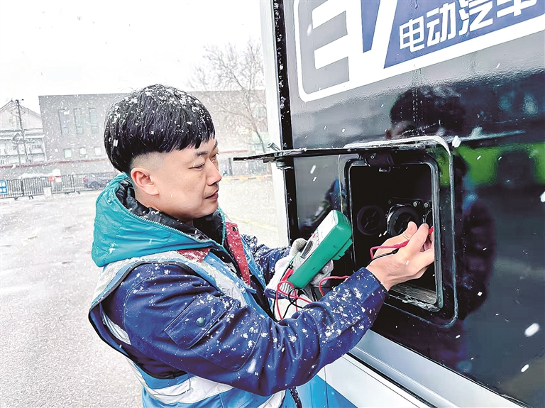 为最大限度保障降雪天气安全运营,保修分公司多维度升级技术服务保障。采取驻站保障和车辆巡查相结合的保障方式,对重点线路车辆动力电池、制动转向、雨刷器、除霜器等涉及降雪天气行车安全和车辆安全的关键系统部位进行不间断检查,共出动车辆技术保障小分队170余支,检查车辆4300余辆次。在重点区域合理设置抢修救援车辆屯集点位,确保车辆运营安全平稳。