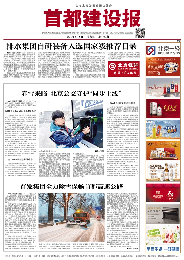 本报讯(记者 刘偶)3月4日,北京迎来一场大范围降雪。首发集团所属首发养护公司和公联洁达公司紧急启动二级备勤,全员投入除雪保畅工作,保障首都高速公路安全运行。